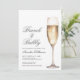 Elegant and simple brunch and bubbly bridal shower design. A classic but modern whimsical look with white, cream, gold and dark gray coloring. Edit all of the text to your own information. Features a single champagne glass as the focus. An overall white and gold vibe, but you can also change out the background color (front and back) and text colors to make it have a different look! A mix of script typography and serif fonts. Modern Brunch And Bubbly Minimal Bridal Shower Invitation.