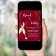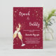 Um convite moderno, na moda e glamouroso para um Chá de panela de bolinho. Um fundo cor de burro com bolhas, um par de flautas, óculos. O nome é escrito com um moderno estilo escrito à mão. Personalize e adicione os detalhes da sua festa.