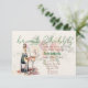 An ivory background with a floral background in reduced opacity on top of that. A bottle of bubbly and glasses image finishes off the invitation.