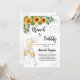 Um convite moderno, na moda e glamouroso para um Chá de panela de bolinho. Um fundo branco com bolhas, um par de flautas, óculos, girassóis e eucalipto verde. O nome é escrito com um moderno estilo escrito à mão. Personalize e adicione os detalhes da sua festa.