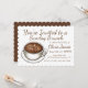 Convite apresenta uma ilustração original de um delicioso café com leite, com texto e destaques marrons. Basta personalizar com suas informações para um convite de chá de noiva, festa de aniversário ou brunch de noivado único.