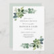 Convite de brunch de casamento com folhas de eucalipto pintadas à aguarela e suculentas. Convide seus convidados para o café da manhã na manhã após o casamento! Personalize com as informações do casal. Clique em "clique para personalizar ainda mais" para alterar o estilo, tamanho ou cor da fonte.