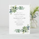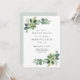Convite para Brunch de Casamento com folhas de eucalipto e suculentas em aquarela. Convide seus convidados para o café da manhã na manhã seguinte ao casamento! Personalize com as informações do casal. Clique em "clique para personalizar ainda mais" para alterar o estilo, tamanho ou cor da fonte.