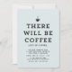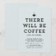 Haverá café! Convide os convidados do casamento para um brunch pós-casamento com café e mais café. Este convite de brunch divertido apresenta um tipo negrito em um fundo azul claro e uma ilustração de xícara de café. Amigos e familiares podem se reunir após o casamento para um brunch de despedida que certamente será um bom momento. Este convite também funciona bem para outras ocasiões e pode ser encontrado em mais cores na coleção de Lea Delaveris Design. Também disponível como download digital de convite de brunch.
