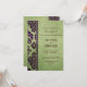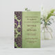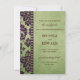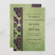 Este design de casamento equilibra delicadamente a simplicidade com a complexidade, um design contemporâneo inspirado pelo velho damasco floral. Uma borda de damasco impressionante e exótica, que lembra rendas, coalhada e varreduras em pincéis, misturando-os a púrpura de berinjela até uma borda de diamante. Além disso, contra um fundo verde-oliva sutil, flectado e manchado, a formulação de convite brusca fará uma declaração ousada, alternando entre eterno, todos os bonés e toques clássicos de guião, em castanho profundo.