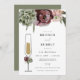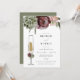 Este convite de chá de panela de brunch e champanhe apresenta flores ricas em burgundy e enfeites suculentos terrosos com uma taça de champanhe floral divertida. Edite a maioria das palavras para atender às necessidades do seu evento. Este convite de chá de panela é perfeito para o seu evento boêmio do deserto ou tema de outono em laranja queimada.