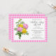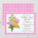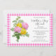 Celebre as mães da sua família com um Brunch de Dia das Mães. Este convite de modelo bonito apresenta uma borda xadrez rosa e branca com rosas amarelas e rosas. Personalize o texto com as informações da sua festa.