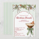 Convite para Brunch de Natal com Gingerbread Espresso Martini Sage – Um clássico festivo com um toque moderno! Este convite elegante de brunch de Natal apresenta uma encantadora ilustração em aquarela de um martini de espresso coberto com um homem de gengibre brincalhão, rodeado por uma delicada grinalda e laços de veludo verde pinho inspirados em coquette. O fundo listrado em verde sage suave e o design de arco moderno adicionam um toque de sofisticação e calor.