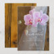 Convide os convidados a continuar a festa na manhã após a cerimônia de casamento com o charmoso Convite de Brunch de Noiva no Country Barn Elegância das Orquídeas Rústicas. Este convite casual, porém sofisticado, para o Café da Manhã ou Almoço pós-casamento com tema de rancho personalizado apresenta uma fotografia floral encantadora de flores de orquídea phalaenopsis rosa no caule com fundo de madeira de celeiro marrom.