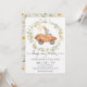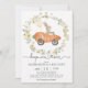 Venha saltar para um brunch de Páscoa e caça aos ovos! Convide seus convidados para a festa com este convite super fofo com um coelho montado num carro de cenoura emoldurado por uma grinalda de flores silvestres.