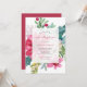 Este na moda e elegante convite de natal de Natal de poste-casamento apresenta um buquê floral de cor-de-água em uma nítida cor branca. Uma mistura de flores de poinsettia, bagas ocas e folhas é colorida em tons festivos de vermelho, rosa, verde, pincel e azul com um roteiro manuscrito moderno. A parte de trás do convite é um vermelho colorido e rosado.