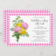 Celebre as mães da sua família com um Brunch do Dia das Mães. Este convite de modelo bonito apresenta uma borda xadrez rosa e branca com rosas amarelas e rosas. Personalize o texto com as informações da sua festa.