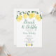 Com limões e folhagens, este convite de brunch e bolha de chá de noiva botânico elegante pode ser personalizado com as informações do seu evento especial e suas iniciais de monograma no verso. Criado por Thisisnotme©