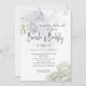 Chá de panela Brunch e Bubble, russos e elegantes, com cantos com abertura de aquarelas em azul e verde-sábio com rosa de aquarela azul e rosehip no topo, todos acentuados com caligrafia de estilo manuscrito. Use nossa modelo fácil de personalizar para personalizar com seus detalhes de chá de panela - o verso é um verde-acinzentado rico com um belo buquê de flores correspondentes. Elegante Design russo de WhimsicalArtwork™ Esta é parte de um Conjunto completo de artigos para casamentos com casamento, chá de fraldas e outros artigos de papelaria para eventos semelhantes.
