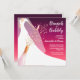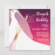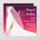 Os convites de chá de panela de Brunch e Borboleta apresentam noiva no vestido e no véu em um fundo cor-de-cereja graduado com uma garrafa de champanhe rosa, sequências falsas e vidro cor-de-rosa com seus detalhes em caracteres brancos. **DICA: O tamanho quadrado REQUER POSTAGEM EXTRA. MAIS cores na coleção.