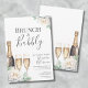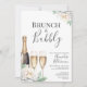 Convite de chá de panela com design fofo e divertido. Um visual clássico, mas moderno e caprichoso com cores branco, verde, creme, dourado e cinza escuro. Edite todo o texto com suas próprias informações. Apresenta uma garrafa de champanhe, taças de champanhe para celebrar, algumas bolhas sutis, claro, e flores de peônia brancas com folhagens. E um visual geral branco e dourado, mas você também pode alterar a cor do fundo (frente e verso) e as cores do texto para dar um visual diferente! Uma mistura de tipografia cursiva e fontes serifadas. Convite de Chá de Panela Floral Brunch e Bubbly.