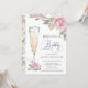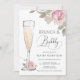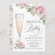 Convite de chá de panela de noiva com brunch e espumante apresenta rosa rosa aquarela, folhagens e um copo de champanhe. Perfeito para chás de panela de noiva que servem mimosas ou champanhe.