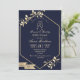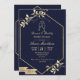 Convite Brunch Espumante Azul Escuro e Dourado Champanhe