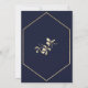 Azul escuro e dourado champanhe geométrico criam um cenário dramático para um brunch de chá de panela. Cores temáticas elegantes e dramáticas são modernas, com grande parte do design artístico encontrado nas linhas e harmonia das várias fontes.