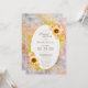 Um convite rústico elegante para brunch, apresentando girassóis pintados e margaridas sobre um fundo abstrato que flui com pastéis quentes.