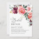 Este adorável Convite Bridal Brunch apresenta florais de aquarela em tons de burgundy, blush e pêssego coral, acentuados com uma folhagem de verde-luxuosa e emparelhados com uma parte de trás rosa suave. Itens correspondentes disponíveis.