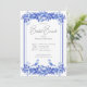 Este convite lembra a porcelana antiga e tempos mais simples. É um padrão que ecoa os padrões usados na porcelana inglesa fina e no stoneware. Múltiplos tons de azul são serenos e elegantes. O verso do convite repete o lindo padrão floral azul. Criado pela imprensa simplesmente de farmácia.