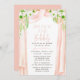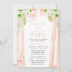 Convites de chá de panela Bridal Floral Bridal Brunch e Borracha de Cor Elegante moderna apresentam um quadro de tecido cor-de-água cor rosa acentuado com flores rosa, brancas e verdes em um fundo branco. Personalizado editando o texto nas caixas de texto fornecidas. Elaborado por ©Evco Studio www.zazzle.com/store/evcostudio