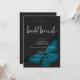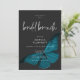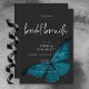 Este design de convite para chá de casamento de apresenta um tema escuro e moderno que é simples, mas espantoso. Um fundo negro de carvão negro é a canvas perfeita para uma mariposa azul-azul-lacrimejante solteiro, suas asas se espalham para o voo. Único e elegante, este design pode ser usado em qualquer estação. Criado pela imprensa simplesmente de farmácia.