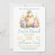 Convide convidados para a sua Páscoa no almoço de domingo com estes bonitinhos convites para o brunch de Páscoa de coelho. Design é de um pintinho de bebê de cor aquosa, ovos coloridos de Páscoa e flores silvestres florais. Um convite adorável para sua família e amigos. Fácil de personalizar com os detalhes do seu próprio partido. No verso, mais detalhes podem ser adicionados, como fantasias de rico ou requisitos de dieta. Texto em azul e amarelo, mas pode ser alterado se necessário.