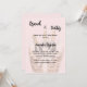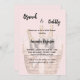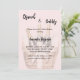 Um convite moderno, na moda e glamouroso para um Chá de panela de bolinho. Um fundo cor-de-rosa macio, decorado com uma cesta com flautas e frascos de vinho espumante. O nome é escrito com um moderno estilo escrito à mão. Personalize e adicione os detalhes da sua festa.