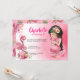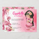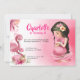 Convite Brunette Girl Tropical Pink Flamingo Birthday