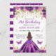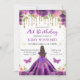 A Elegante aquarela Brunette carregava princesa em design de roupas roxas profundas com flores roxas e douradas, borboletas e confete dourado.