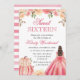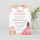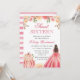 Convite Brunette in Pink Dress Floral Pumpkins Sweet 16