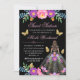 Mulher cabeleira de aquarelas no estilo preto floral mexicano design com flores roxas e borboletas de ouro rosa e cor-de-rosa