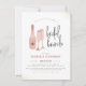 Esta design moderna mostra uma ilustração desenhada à mão de uma garrafa de champanhe e dois copos de champanhe em lindos tons de rosa e ouro. À direita, aparece "brunch" (bronze) em letras escritas negras. O nome da noiva aparece abaixo em maiúsculas rústicas com os detalhes do evento do chá. Nos cantos superior direito e inferior esquerdo, há aparas falsas de ouro. Cartões inverter para uma imagem de textura de tinta preta contra um fundo branco. Clique em "Personalizar" para alterar o texto. Fique à vontade para me contactar se tiver alguma pergunta!