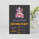 Convite Bruxa de Cabelo Rosa Chapéu Roxo Preto Halloween