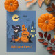 Convite Bruxa de Halloween, Gato Negro e Festa de Bombeiro