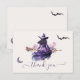 Cartões de agradecimento para chá de panela de Halloween em aquarela "essa bruxa vai casar" com elementos florais roxos e laranjas. Apresenta a bela imagem das costas de uma bruxa montada numa vassoura. Perfeito para chá de panela, festa de noivado, despedida de solteira perto do Halloween! Para fazer mais alterações, vá para Personalizar este modelo. Na parte inferior, você verá “Quer personalizar ainda mais este design? Clique em EDITAR usando a ferramenta de design. A partir daí, você pode alterar algumas das fontes e cores, mover as coisas ou excluir o que precisar. Um pouco de conteúdo gerativo de meia jornada combinado com elementos desenhados à mão.