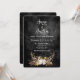Guirlanda de luz em bouquet floral de galhada de veado em couro preto desgastado para um convite de casamento de outono.