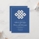 The knot, one of the eight auspicious symbols in Buddhism, is perfect for a wedding ceremony, as it represents connection with everything and also stands for happiness, harmony, and a long life. The blue symbolizes good fortune and sublimity and, together with the knot, forms a wonderfully symbolic unity for this invitation card.