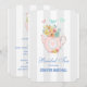 Convite Bule de Chá Rosa com Flores & Borboletas Chá de No