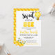 Este convite apresenta uma adorável abelha bebê e um pente de mel com margaridas.