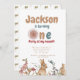 Convite de festas primeiro aniversario de Bunnies. Folhas nas costas.