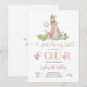Celebrate your little ones special day with this whimsical bunny birthday invitation featuring a watercolor bunny in a pink jacket and floral crown holding a balloon. Surrounded by soft greenery and pink blossoms, this charming design is perfect for a girls 4th birthday party. The playful woodland theme adds a magical touch, making it ideal for fairy garden parties or spring celebrations. Personalize easily with your childs name, party details, and create a keepsake guests will love.