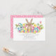 Bonito convite para a janta de páscoas florais e a caça aos ovos, com um buquê floral colorido, com um coelho castanho, sobre fundo branco, com um fundo de coordenação.