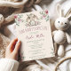 O Convite para Chá de fraldas de Coelheira Florestal Animal Watercolor é super fofo para Chás de fraldas de Primavera ou Páscoa. As adoráveis flores de aquarelas e coelhinhos certamente encantarão seus convidados e será um tesouro no seu livro de bebês para seu bebê. Este convite para chás de fraldas tem um estilo macio e caprichoso com ilustrações de aquarela pastel. Um belo coelho senta-se no centro, rodeado por delicadas disposições florais cor-de-rosa e verdes, dando-lhe uma sensação encantadora de floresta. As fontes misturam o roteiro lúdico com o sorse elegante, acrescentando um toque moderno, ainda que acolhedor. O bege-claro e os tons esbranquiçados criam um calor, convidando a estética perfeita para uma comemoração temática para bebês. No geral, a design sente-se gentil, feminina e inspirada na natureza.