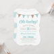 Este convite moderno do chá de fraldas caracteriza um gráfico bonito da estamenha nos azuis. Mude a forma do cortada no design do suporte extravagante a diversos outros estilos.