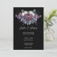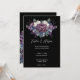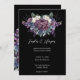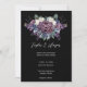 Nossa suíte de convite para casamento gótico é perfeita para casais que estão procurando por uma estética escura e melodia. O buquê floral de aquarela é acentuado com flores roxas, violetas e índios, com rosas brancas, dando à suíte um olhar ousado e dramático. O fundo colorido escuro faz as cores pop e cria um contraste espantoso.