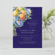 Adicione um toque fresco e romântico à sua papelaria de casamento com esta vibrante design floral de citros de aquarela. Apresentando limões pintados à mão, laranjas, mirtilos e flores florescentes de jardim em tons ricos de roxo, rosa e azul, este buquê elegante é perfeito para casamentos de primavera ou verão. Ideal para convites, cartas de agradecimento, cartazes ou presentes de casamento personalizados. Uma charmosa mistura de frutas e flores traz um talento caprichoso e inspirado no Mediterrâneo a qualquer celebração.
