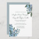Buquê floral azul de delfinium com cinzas e folhas verdes. Elegante, floral, design de buquê de jardim botânico. Perfeito para qualquer amante de jardim. Personalize para si mesmo ou para qualquer entusiasta das flores. Design totalmente editável,